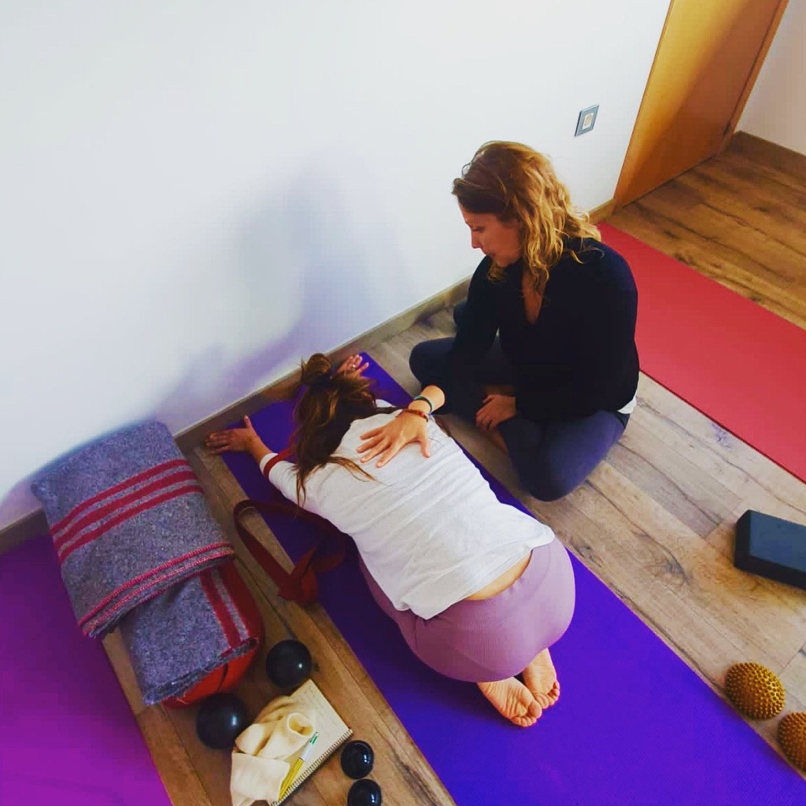 Una sesión de Yoga terapéutica o una clase particular de Yoga es la manera más eficaz de aprender el trabajo de autosanación de Karmuka Yoga. Las tècnicas terapéuticas de Yoga investigado por Dr. Peter Levine (Somatic Experience), B.K.S. Iyengar, el Paramanand Institute of Yoga and Science Research, y gran maestros como Yamuna Zake y Swami Vivekananda están integrado para liberar y realinear el sistema óseo, la fascia, mejorar la respiración y digestión resultando en un sistema nerviosa más calma y una mente que funciona con más claridad.